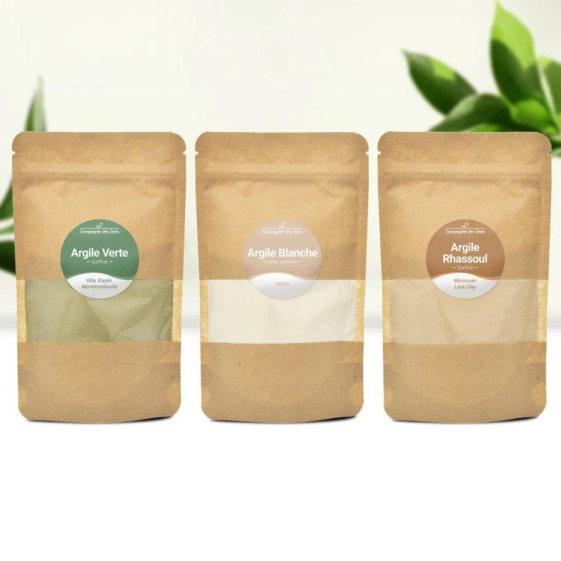 - Argile Verte en poudre – 150 g : Elle est davantage adaptée aux peaux mixtes à grasses. Elle est absorbante ce qui lui permet d’éliminer des impuretés et l’excès de sébum. Elle est également reconnue pour ses propriétés réparatrice cutanée, détoxifiante et anti-rides.