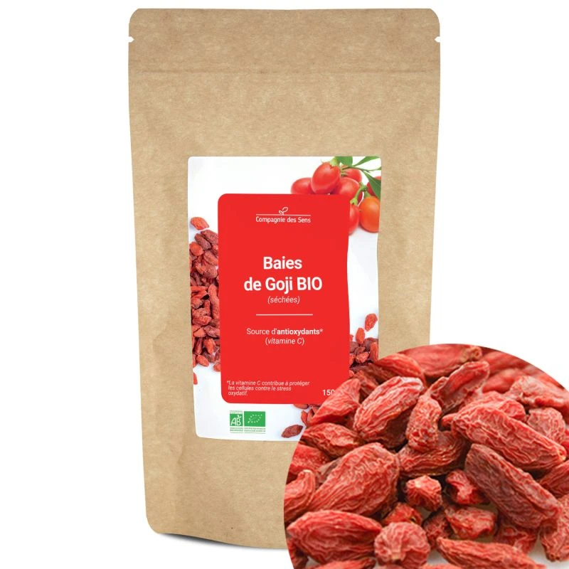 Ces Baies de Goji sont certifiées BIO par Ecocert (FR-BIO-01). Elles sont source d’antioxydants (vitamine C). Les Baies de Goji sont séchées naturellement au soleil et vendues en vrac dans un sachet hermétique pour préserver tous leurs bienfaits et les utiliser facilement au quotidien. À consommer seules ou mélangées avec d’autres fruits secs dans des préparations sucrées, salées ou en infusion tout au long de la journée en tant qu’en-cas sain.