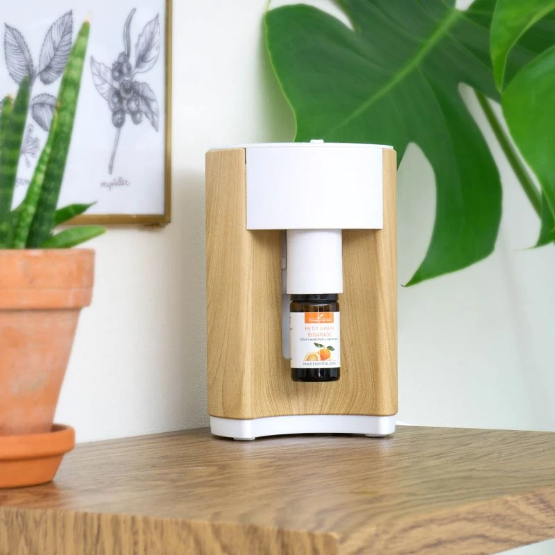 Le diffuseur Litsea est un diffuseur par nébulisation qui se veut moderne dans son fonctionnement et sobre dans son design extérieur. Tout comme le Nébulo et le Citrus, ce diffuseur est signé Compagnie des Sens, mais diffère de ces deux prédécesseurs par l’absence de verrerie. La nébulisation se fait au sein d’une buse en polymère, ce qui le rend certes moins poétique, mais tout aussi puissant, plus facile d’utilisation et bien plus robuste ! Ce diffuseur est entièrement paramétrable : durée de fonctionnement, rythme d’alternance des plages, vous lui faites faire vraiment ce que vous voulez.
