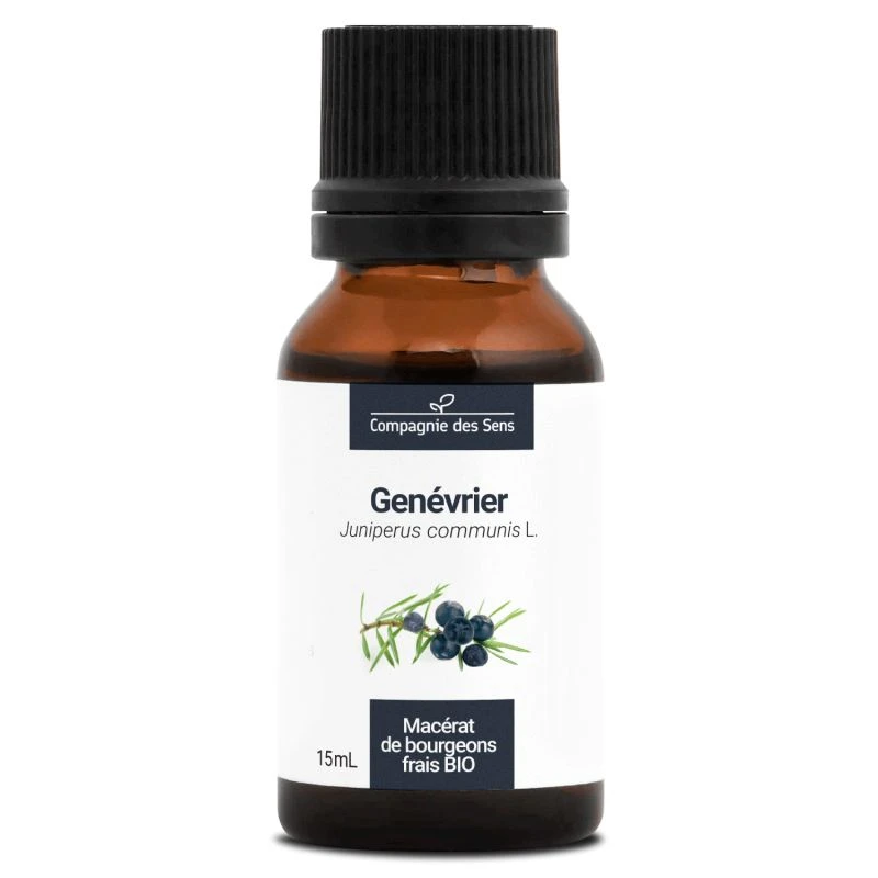 Il est issu de la macération de bourgeons de Genévrier, récoltés en France, dans un mélange d’eau, d’alcool et de glycérine végétale. Ce procédé permet d’extraire tous les principes actifs et toute la puissance des bourgeons.